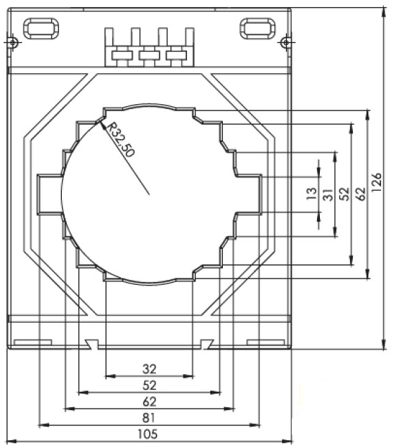 Transformador de corrente 81x13, 1500/5A -0,5S - 20VA - 80mm, Tensionamento